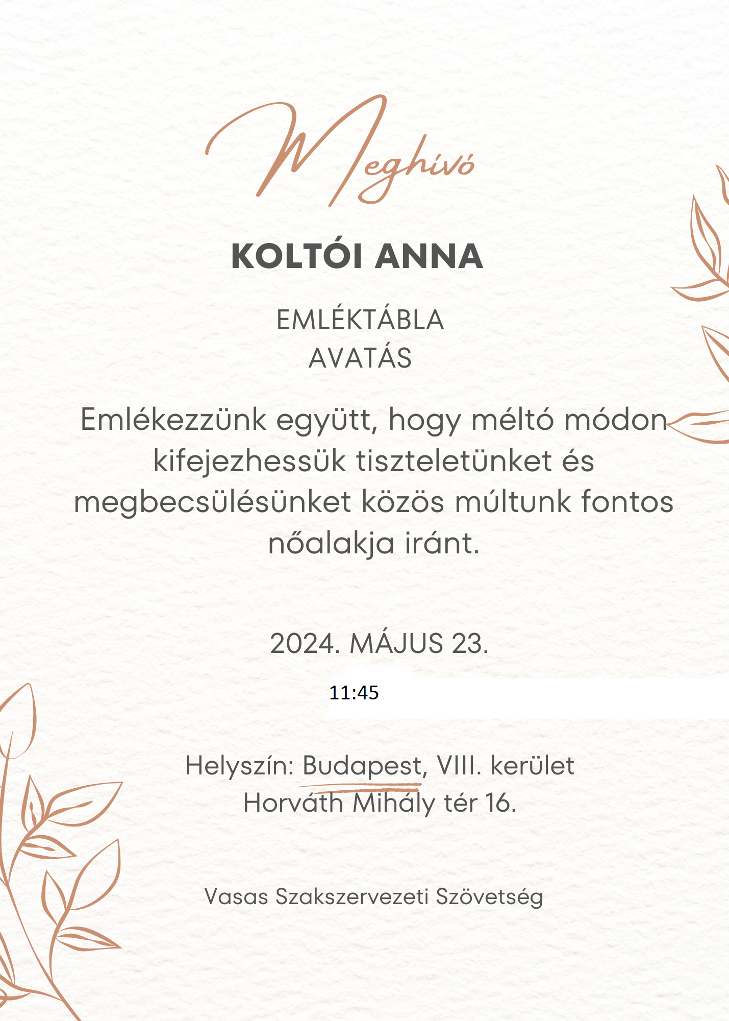 Koltói Anna Emléktábla avatása, Budapest VIII. Horváth Mihály tér