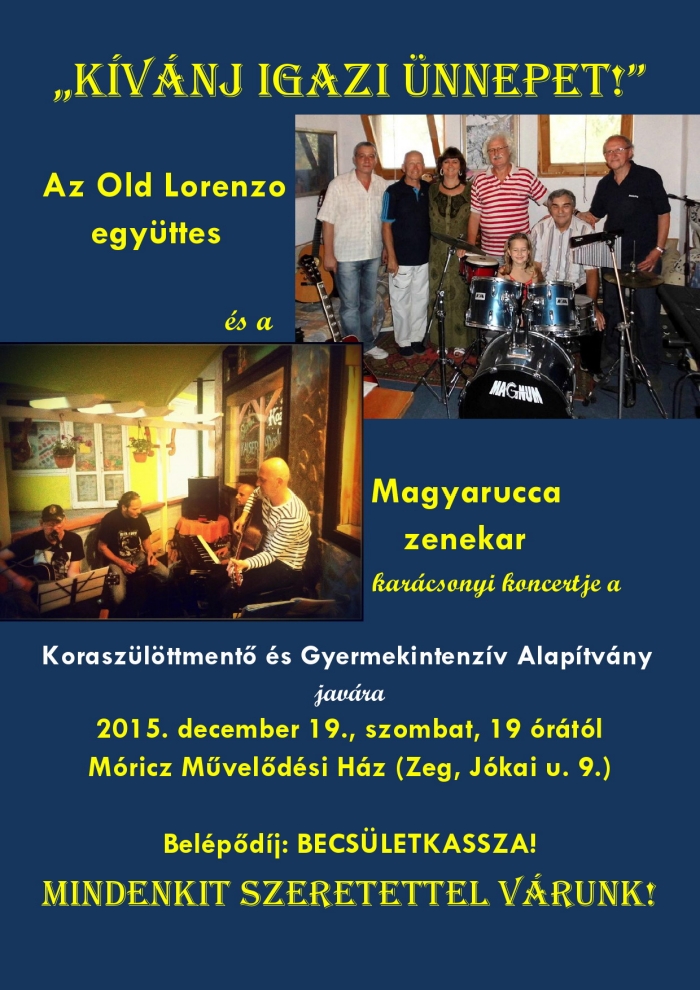 2015. december 19-én 19.00 órától a zalaegerszegi Szakszervezeti Székházban (8900 Zalaegerszeg, Jókai u. 9.) jótékonysági estet tartanak, ahol a házigazda és a fő támogató a Vasas Szakszervezeti Szövetség. A jó hangulatról pedig az Old Lorenzo együttes gondoskodik.