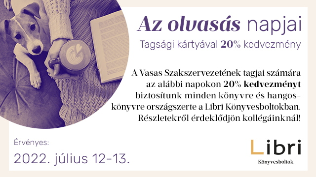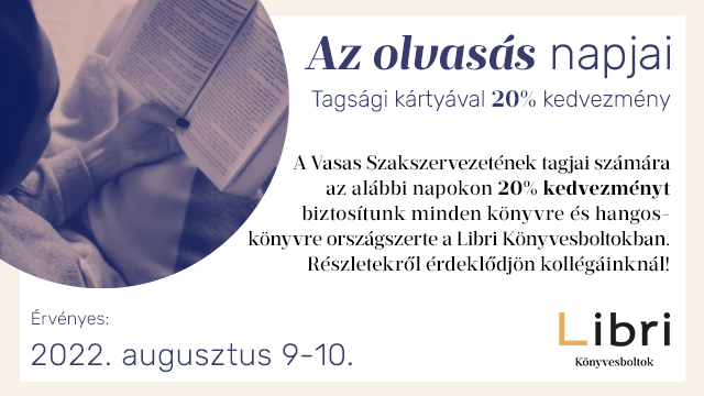 Az olvasás egy izgalmas kaland, nagy öröm. Ne feledjétek! A Vasas tagok júliusban, két napon 20% kedvezménnyel vásárolhatnak könyveket országszerte a Libri könyvesboltokban a tagkártya felmutatásával!