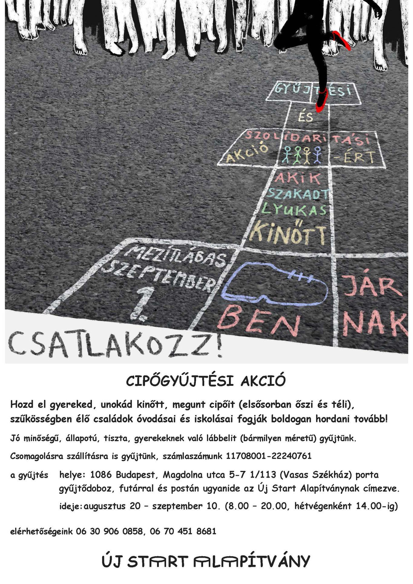 Az idén is szervez cipőgyűjtést az Új Start Alapítvány. Jó állapotú, bármilyen méretű gyerekcipőket várnak szeptember 10-ig az Alapítvány kollégái. A részletekről itt találtok információt.