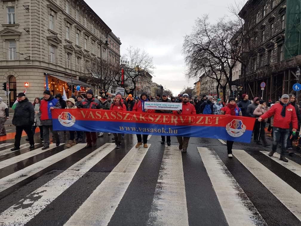 A tegnapi budapesti tüntetésen részt vettek a Vasas munkatársai, tisztségviselői és tagjai is az ország számos helyéről. A rabszolgatörvény miatt demonstrálók országos megmozdulást helyeztek kilátásba január 19-re. Kordás László, a Magyar Szakszervezeti Szövetség (MaSZSZ) elnöke a szombati tüntetés egyik szónokaként olvasta fel az alábbi követeléseket: