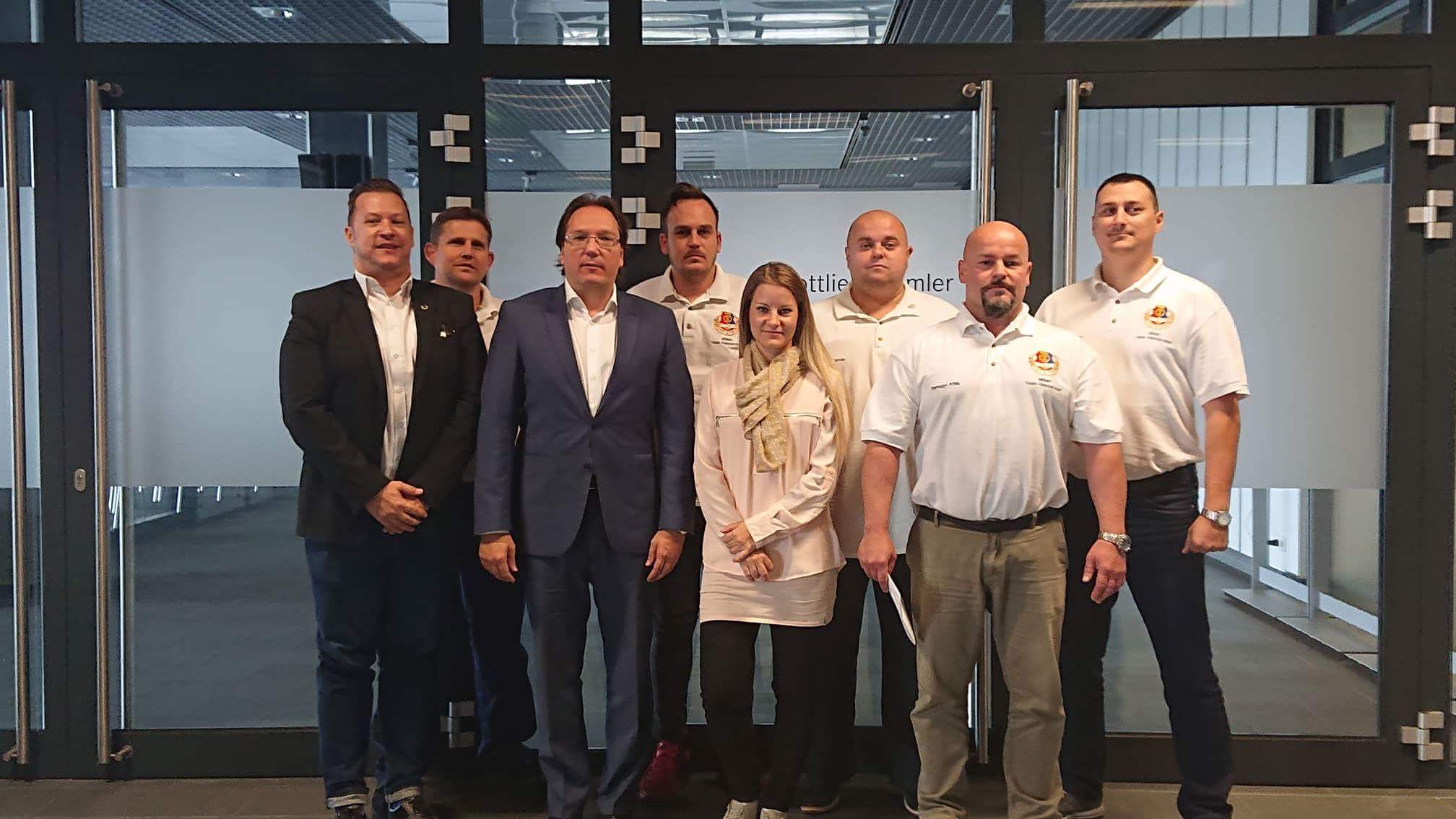 Megkezdődtek az egyeztetések a jövő évi bérekről néhány cégnél. Így szeptember 18-án a kecskeméti Mercedes gyárban is lezajlott a bértárgyalások első fordulója. Jelenleg már két fordulón vannak túl, de egyelőre csak az álláspontok ismertetése zajlik. A mellékelt képen a kecskeméti MBMH Vasas Alapszervezet bértárgyaló delegációja látható. Balról jobbra: Bere Ferenc, Balog Ferenc, Dr Neuport Zsolt, Hup Richard, Besenyi Kitti, Szlávik István, Somogyi Attila és Csercsa István.