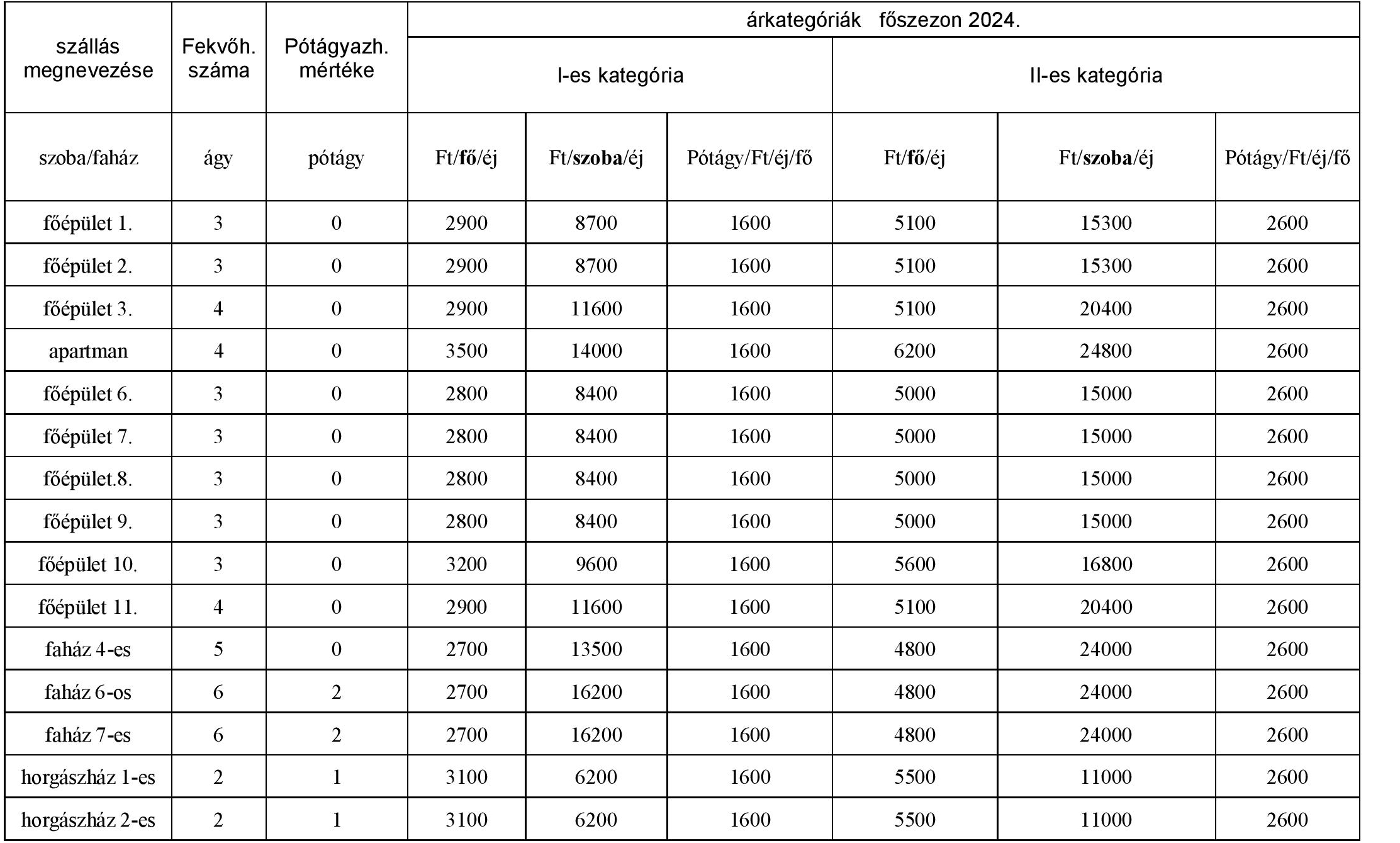 Az idei, 2024-ben aktuális árak és szabad kapacitások